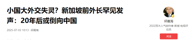 邱震海2025-07-03小国大外交失灵?新加坡前外长罕见发声:20年后或倒向中国